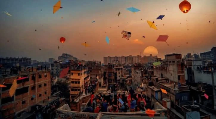 সারা আকাশজুড়ে নানা রঙের ঘুড়ি উড়ে সারাদিনভর । আর সন্ধ্যা হলে শুরু হয় আরেক মাতম । সারাদিনের বাজানো মাইকের গান রূপ নেয় আলোঝলমল ডিজে পার্টিতে । সাহসী যুবকেরা মুখে কেরোসিন নিয়ে হাতে রাখা আগুনের মশালে ছুড়ে দিচ্ছে । সৃষ্টি হচ্ছে অভূতপূর্ব এক দুঃসাহসিক দৃশ্য । কে রুখে তারে। সারা রাতভর চলে এ মাতম ক্লান্ত দেহে ঘুমোতে যায় ভোরে ।